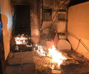 وهرعت الطواقم إلى المواقع، حيث رصد الأفراد اشتعال النيران في مداخل البنايات وخزائن الكهرباء والملاجئ.